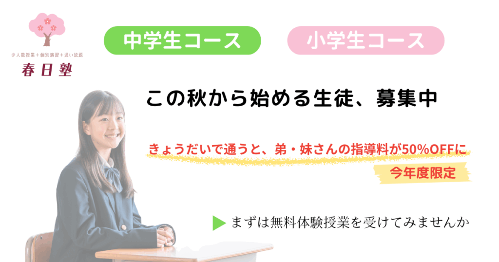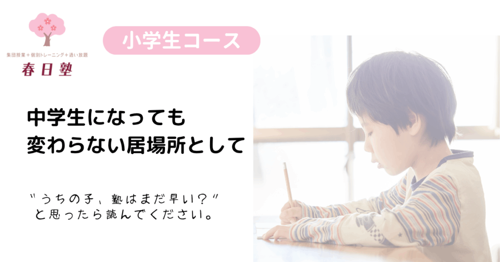 春日塾は、一人ひとりのペースに合わせた指導と通いやすい定額制で、基礎から応用まで無理なく勉強の習慣を身に付け、自ら学ぶ力を育てます