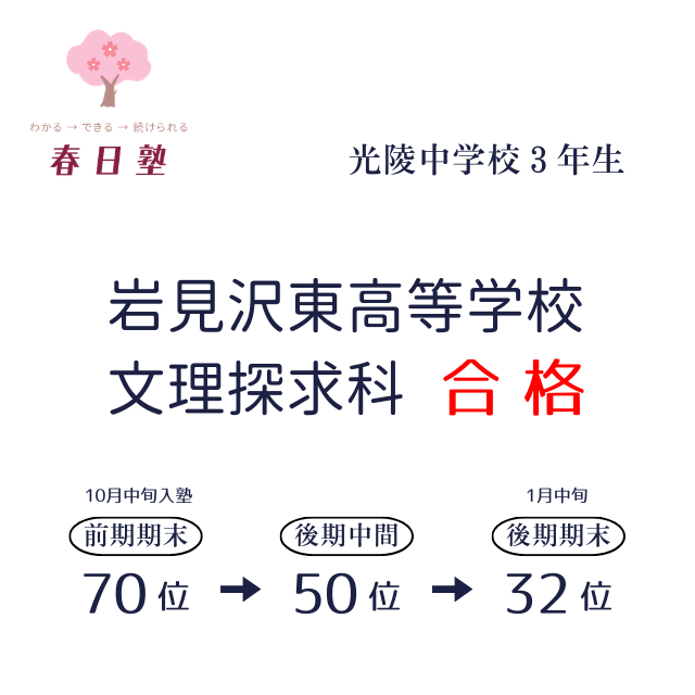 生徒本人の日々の努力と積み重ねが、合格という形につながりました。